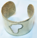 Le travail du métal lui donne un aspect à la fois authentique et élégant, avec une finition artisanale qui capte la lumière et met en valeur les détails du bracelet. Sa forme ouverte permet de l’enfiler facilement et de l’ajuster confortablement au poignet.